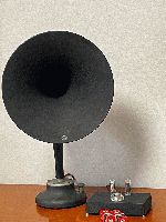 博物館級の機材ではないでしょうか。 再生帯域は電話か蓄音機並みですがラジオ音声や声楽などは役に立ちそう。 当時がしのばれます。アンプ込みで鳴らしているのも面白い。 |