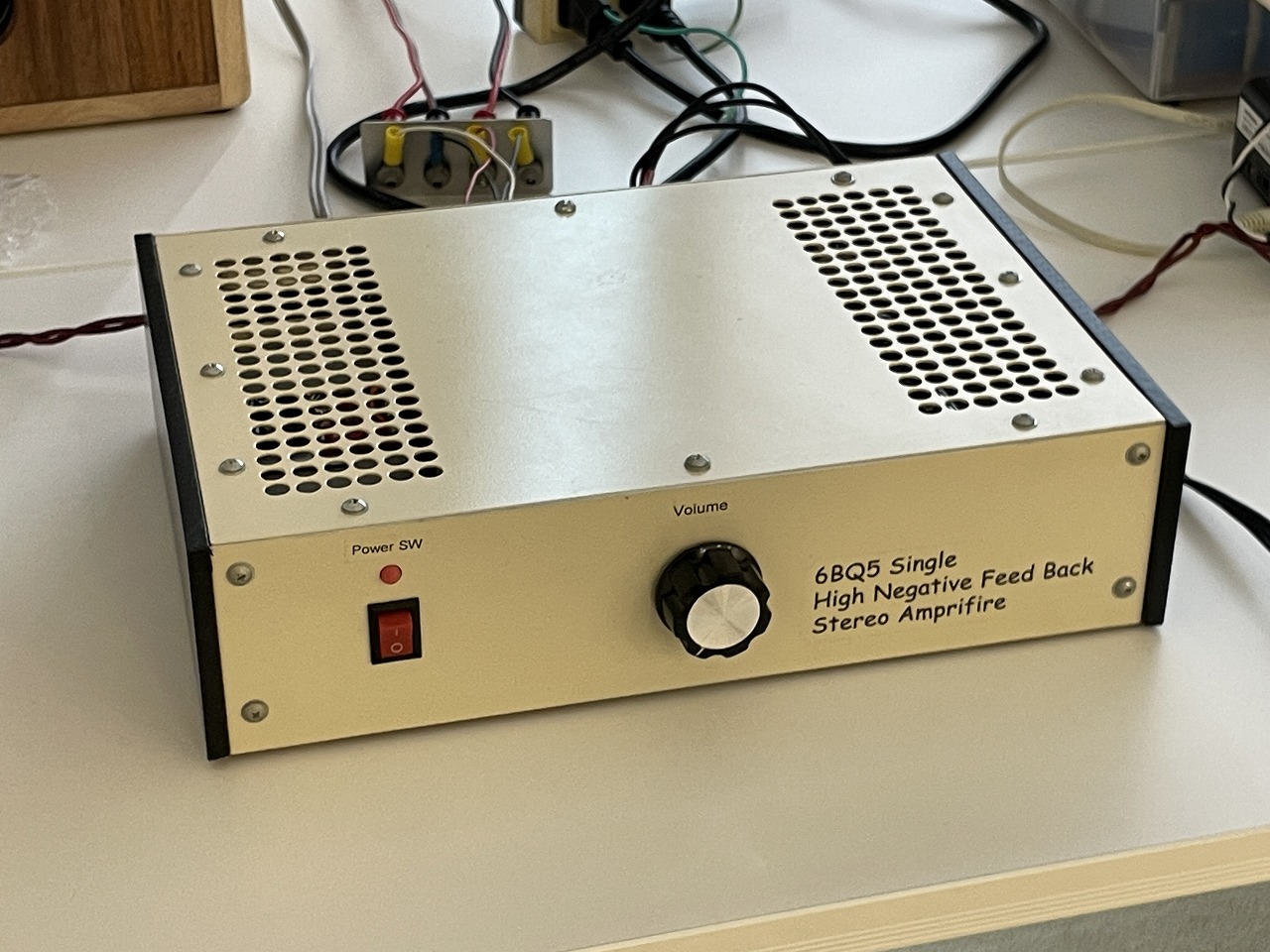 以前に作った6BQ5シングルの改訂版。高性能OPampへの交換を機に処々を見直されたとのこと。