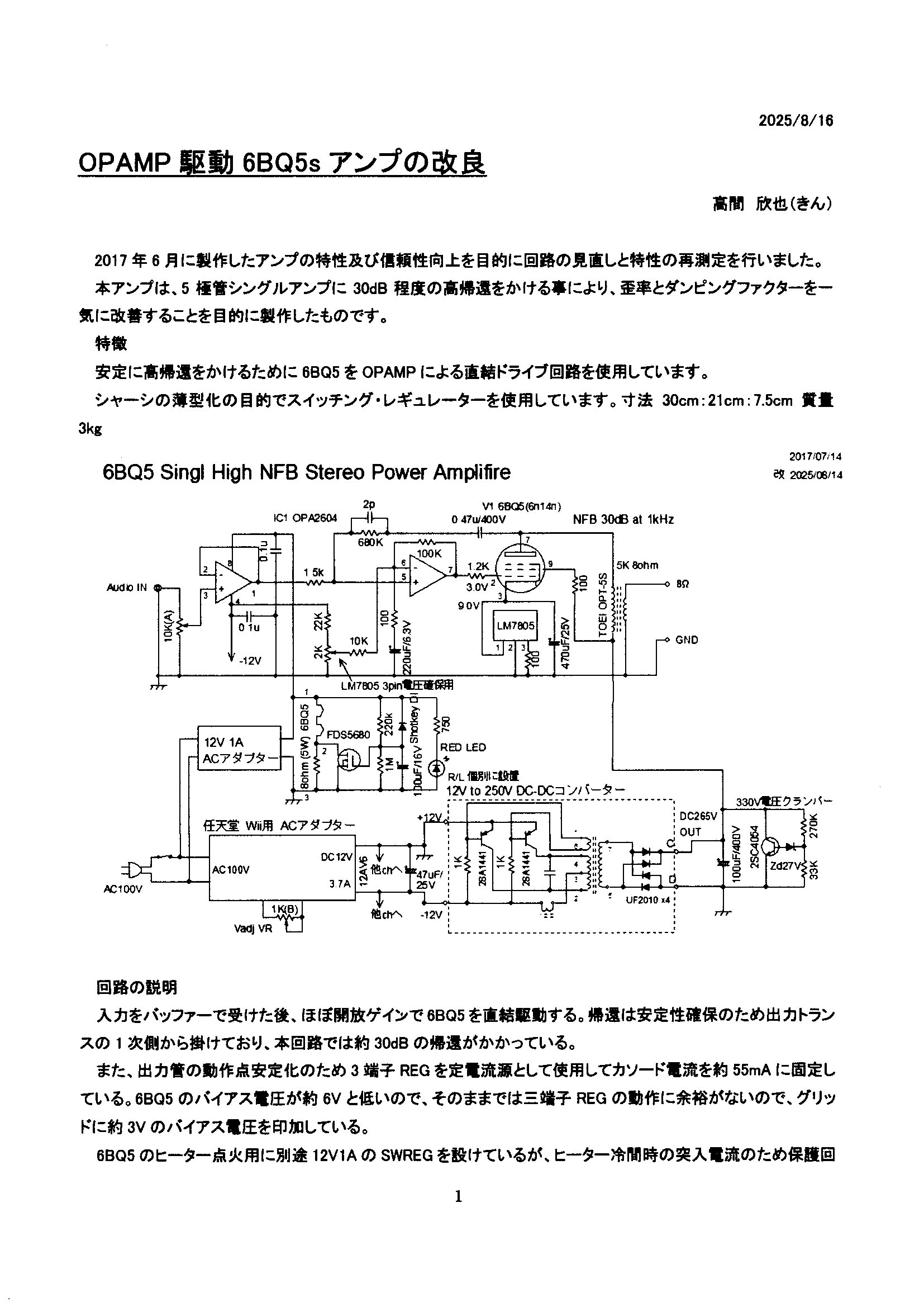| OPAMP Drive 6BQ5s アンプ 高間 さん | |