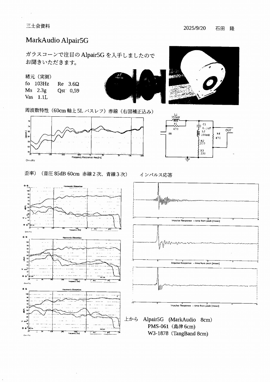 ミッドレンジの低域改善やサブウーファーユニットのパラメータ変更等改善したい場所が数カ所あります、年末までにはそれなりの完成度にしたいと思ってます。