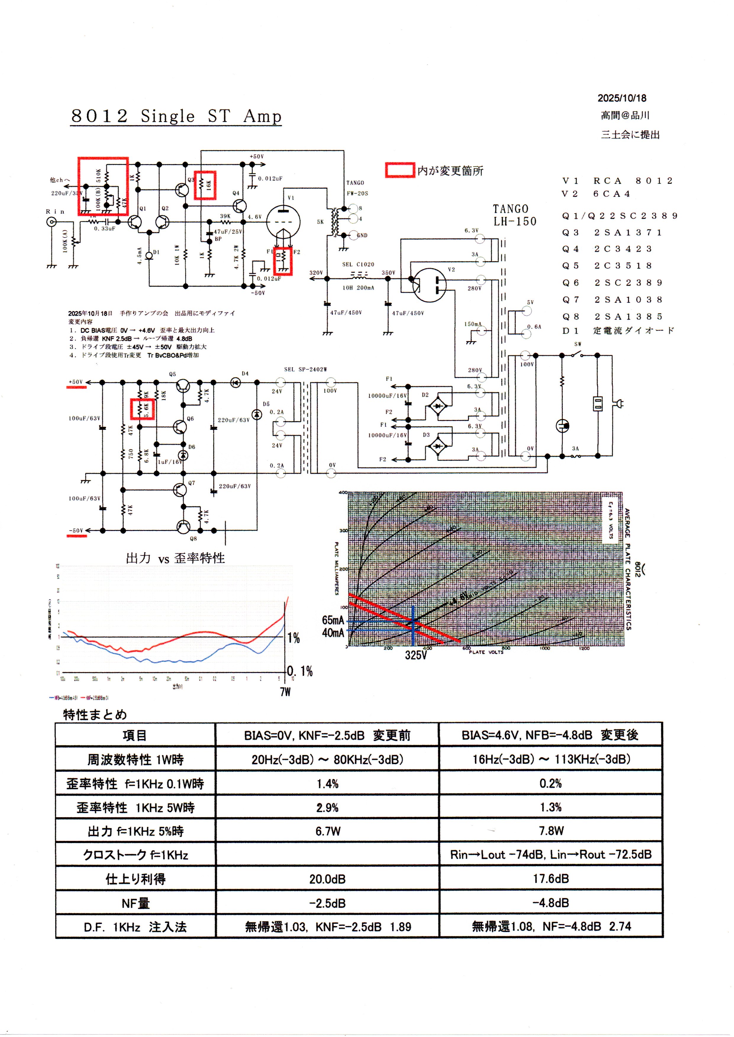 8012という珍しい球のアンプを再調整して見事にリファインされています。動作点などの見直しで特性的にもかなり改善されていました。