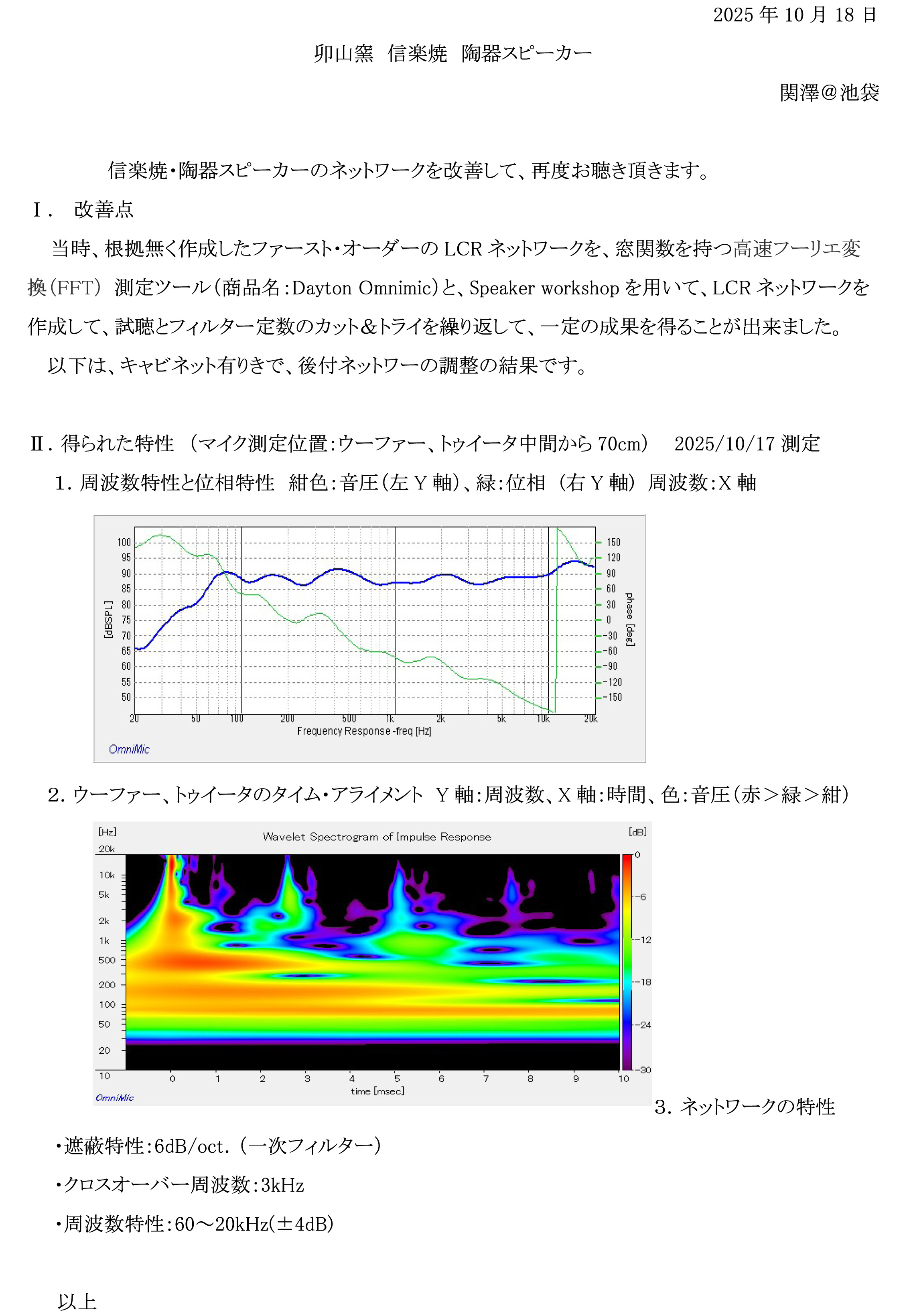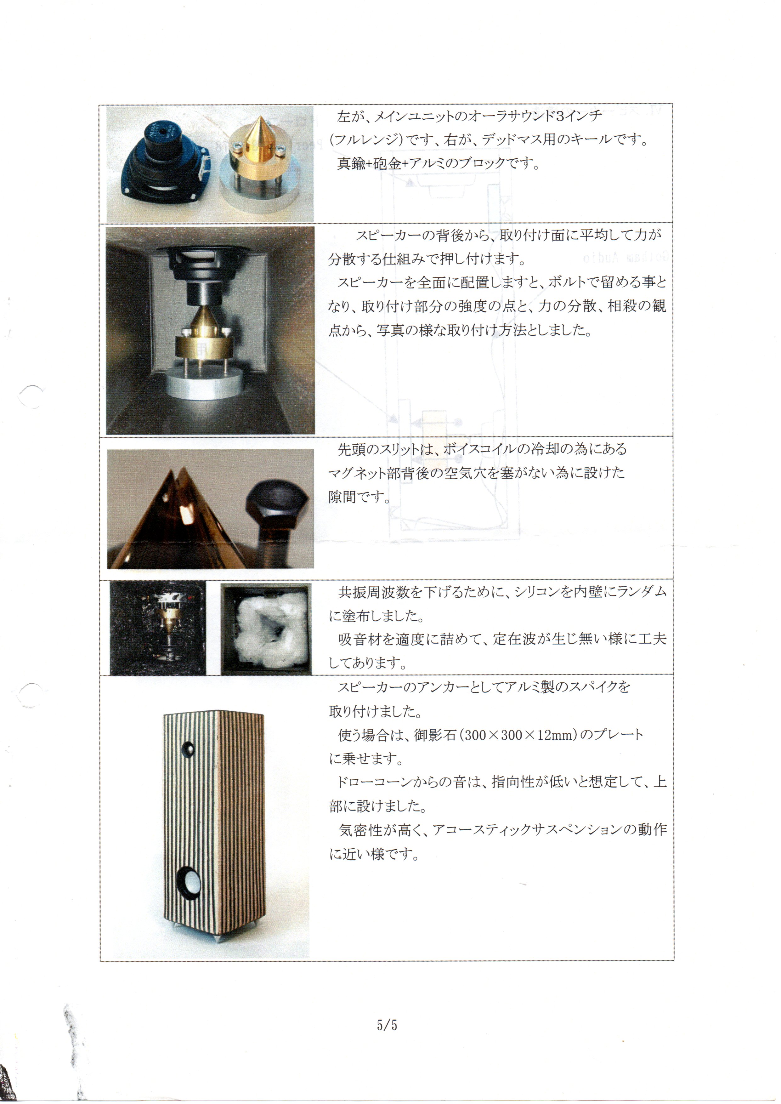 出品者のコメント: 今回は3個の各ユニットの形状と配置を反射や回折を考慮し最適化したつもりです。滑らかな波面を作るという事ですが果たしてそうなったのかどうかはこのデータからは読み取れませんが聞く位置を変えたときに発生する急激な音質変化は少なくなったような気はします。 今回の皆様の発表は極簡単なのからユニークで奥深く芸術的な物まで幅広くあって大変刺激的で良かったと思います。 |
