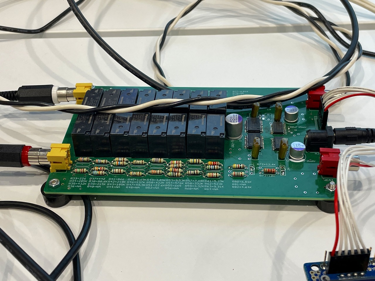 出品者のコメント: 今回苦労したのは抵抗を正確に測定することです。Agilent 43301Aを4線式にして校正、秋月電子のDE5000も4線式プローブにして校正して、エアコンを24時間入れっぱなしにして測定値が4桁安定しました。インタフェースをSPIにしたので複数のLOGATTを直列につないで同時に制御できます。小林は基板を作っただけ。櫻井さんが制御プログラムを書いてくださいました。 |