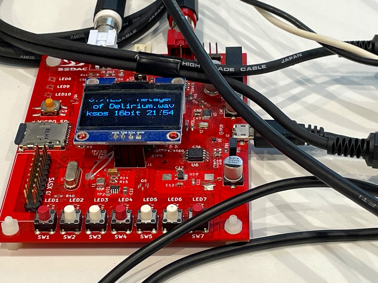 出品者のコメント: SPIインターフェースのDACを使っています。16ビットのデータを送るごとにCSをHIGHにする必要があるのですがこのHIGHの期間を1クロックだけにすることでギリギリDACの最大動作速度内に収めることができました。xCOREプロセッサの持つ、ハードウェアの機能をソフトウェアで柔軟に定義できる、という利点により容易に実現することができました。 (参考) KiCadプロジェクト https://github.com/sa9ra1xken/hw_xSSDAC XMOSソースコード https://github.com/sa9ra1xken/sw_xSSDAC |