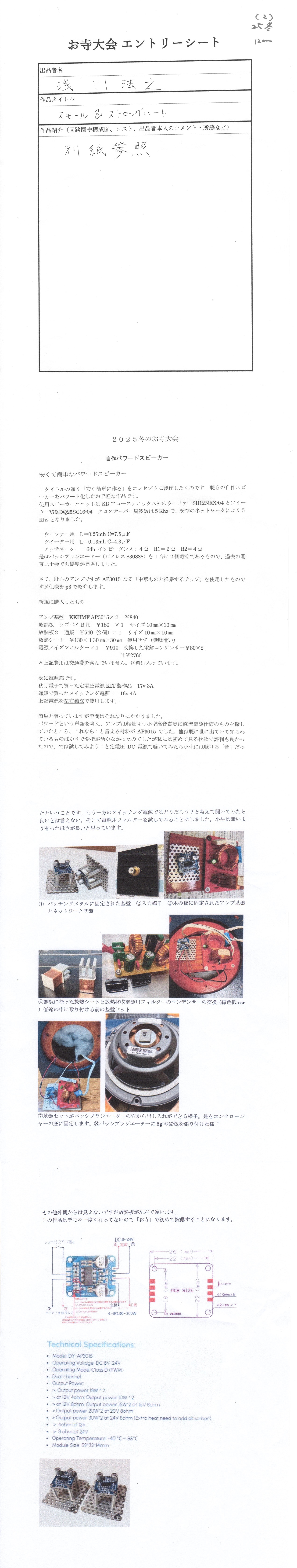 デジタルアンプも簡易になったので、この様にスピーカの付属品のような使い方で手軽にパワードタイプにして利用すれば気軽に使えそう。