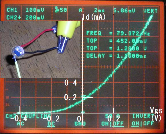 の特性を測ってみました。Idssが0.2mA弱、ピンチオフ電圧は0.2V強です。0.2Vでサチルということで、パナのコンデンサマイクは微小入力でしか使えないと言うことです。 ついでに、D-Sが交換可能か確認しました。......つっ 使えない......。内部にダイオードかなにか入っているんでしょうか。