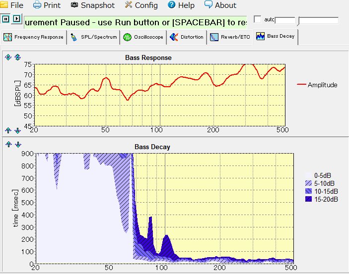 インパルス応答の反射の除去という方法では反射波の避けられない室内においても、低域では難しいとはいえスピーカそのものの特性をなるべく正確に把握することができるようになります。