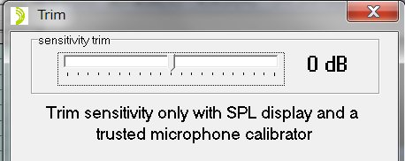 また基準となる校正済みの音圧計があればConfigメニューから「Adjust」を選ぶと音圧計との感度差を微調整することもできます。(通常は自動設定されるの必要ありませんが、一度は確認した方が良いと思います。修正は録音デバイスのプロパティからも可能です。)