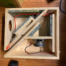 上手く組み込みましたね左上の丸穴が中高域でしょうか、小径みたいなのでクロスfを400hzにするという案はどうでしょうかね。
