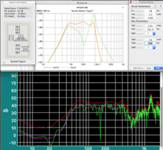完成を待ちきれず、まだ接着してないので小さな音でチェックしてみました。上がシミュレーション、下が実測の特性、バンドパスの通過帯域が予想と大きく違ってますね、チャンデバが必要そうです。