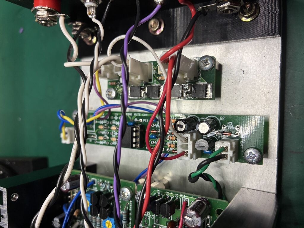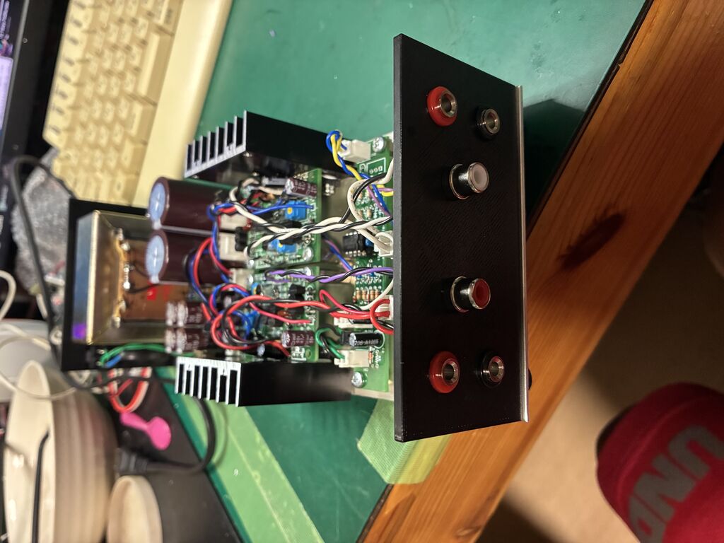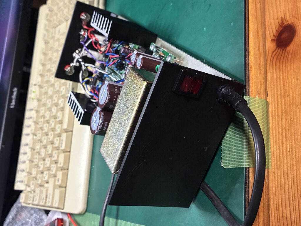 LH0032の等価回路の、小出力パワーアンプです。2015年位に、一旦動作させておりましたが、部品取りされて可愛そうなことになっておりましたので、フロントパネル、リヤパネルを3Dプリンタで作り、保護回路は、マイコン方式で出力はMOSFETのリレーで切っております。