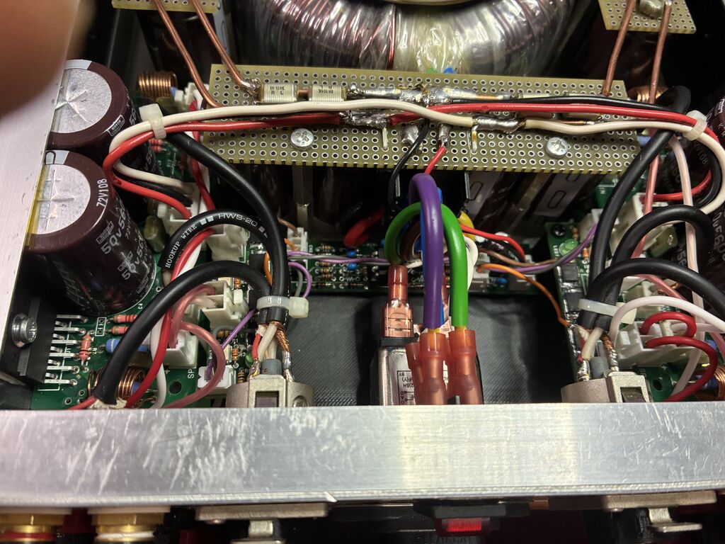 私も金田アンプを投稿しようと思っていました。物量の投入 DCサーボを用いたアイドリング調整 電源投入時の中点コンデンサ充電リレー OUT-25.8vの調整はA607の共通エミッタ50Ωで調整ですか 少し電圧がばらつくかもしれませんね? 色々と工夫されています、参考になりました。
