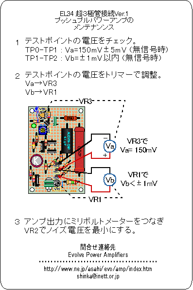 再度VR1でTP1とTP2の電圧を0Vに、VR3でTP0とTP1またはTP2の電圧を150mV程度に再調整します。