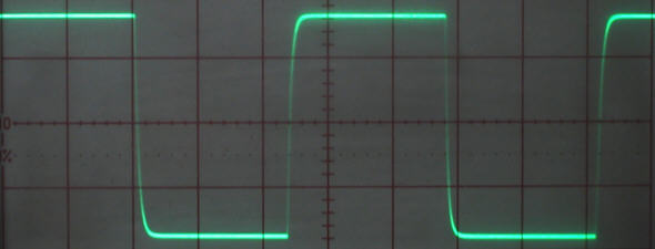 肝心の方形波波形は、入力側に設けた3.3kΩと100pFのローパスフィルタのために出力波形の角が丸まってます。