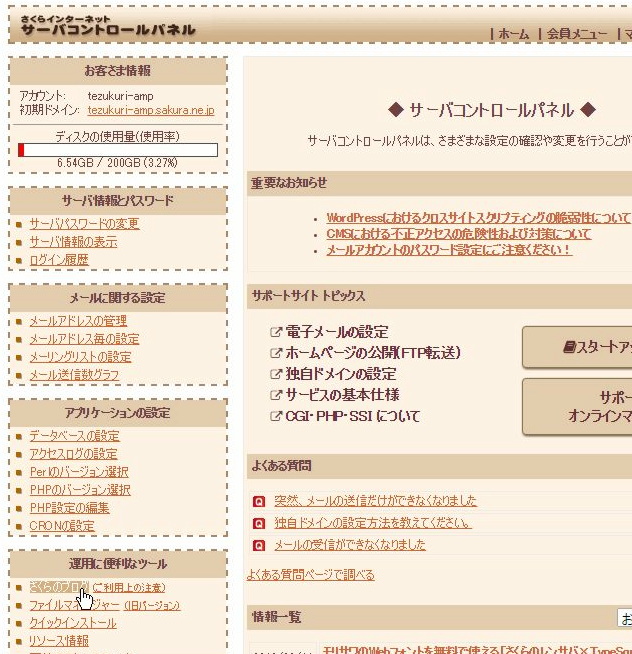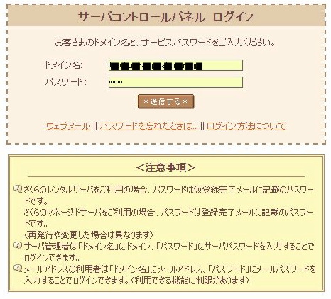 コントロールパネルにログインページからログインします。
