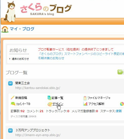 さくらのブログをクリックします。