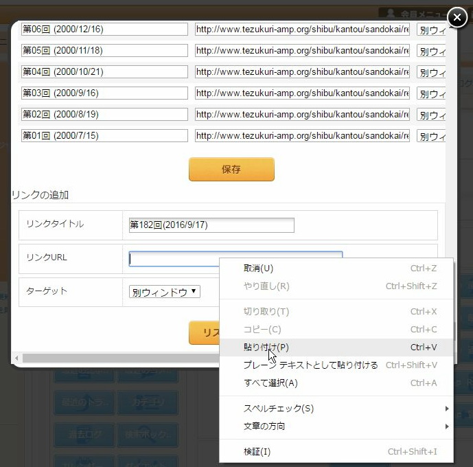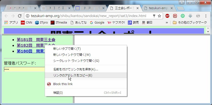 ブラウザをもう一つ立上げ、三土会の記録のページからリンクを作成する回のところで右クリックします。そして、リンクのアドレスをコピーします。