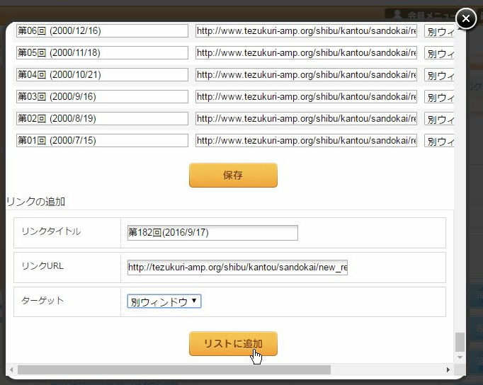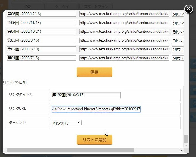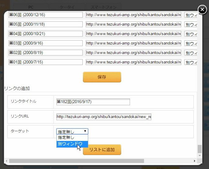 ターゲットは別ウィンドウを選びます。続いて、リストに追加をクリックします。