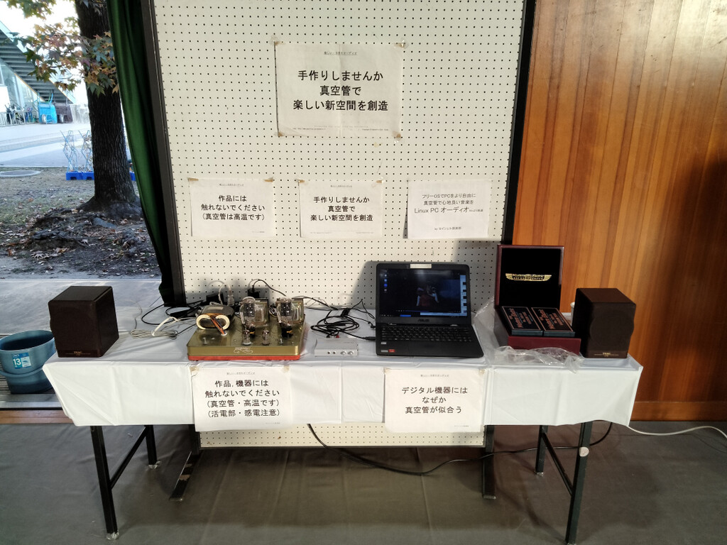 本日10/8)、西丘文化祭の準備いたしました。出展は、ジーベックホール時 力あれば持参だった300B P,K出力アンプです。Linux PC音楽ソースをUSB-DACし、300BでAltecを奏でます。WE, Altecサウンドは心地いいですね。明日(10/9)、会場でお会いいたしましょう。