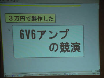 会の標準アンプ バランスの良い音 (当日、片chの6V6が不調であったため、実力を発揮できなかったようだ) (説明資料) |