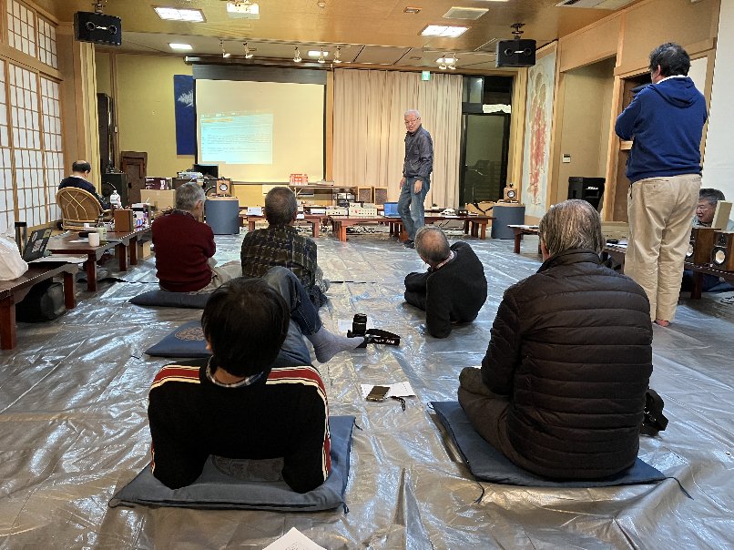 前回に続いて妙法寺のお部屋をお借りしてのお寺大会でです。 今回の課題は半導体フル・ディスクリートアンプです。