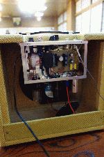 ギターアンプ用とのことだが、仕上げが布張りで緻密で細かい。半分売り物のようなものなので仕上げは流石です。プロの技です。
