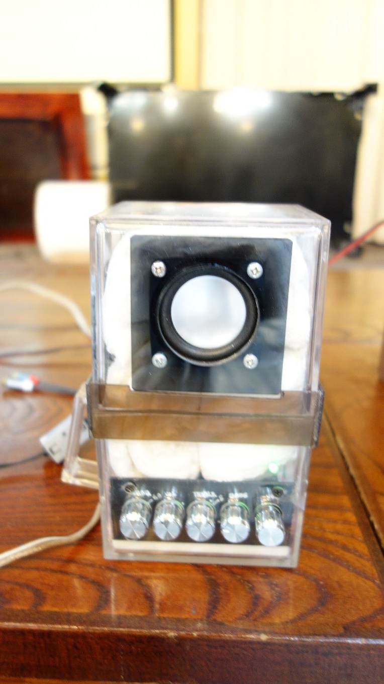 今回の作品は既存のスピーカーにパワーアンプチップを内蔵させただけのシンプルなパワードスピーカーです。