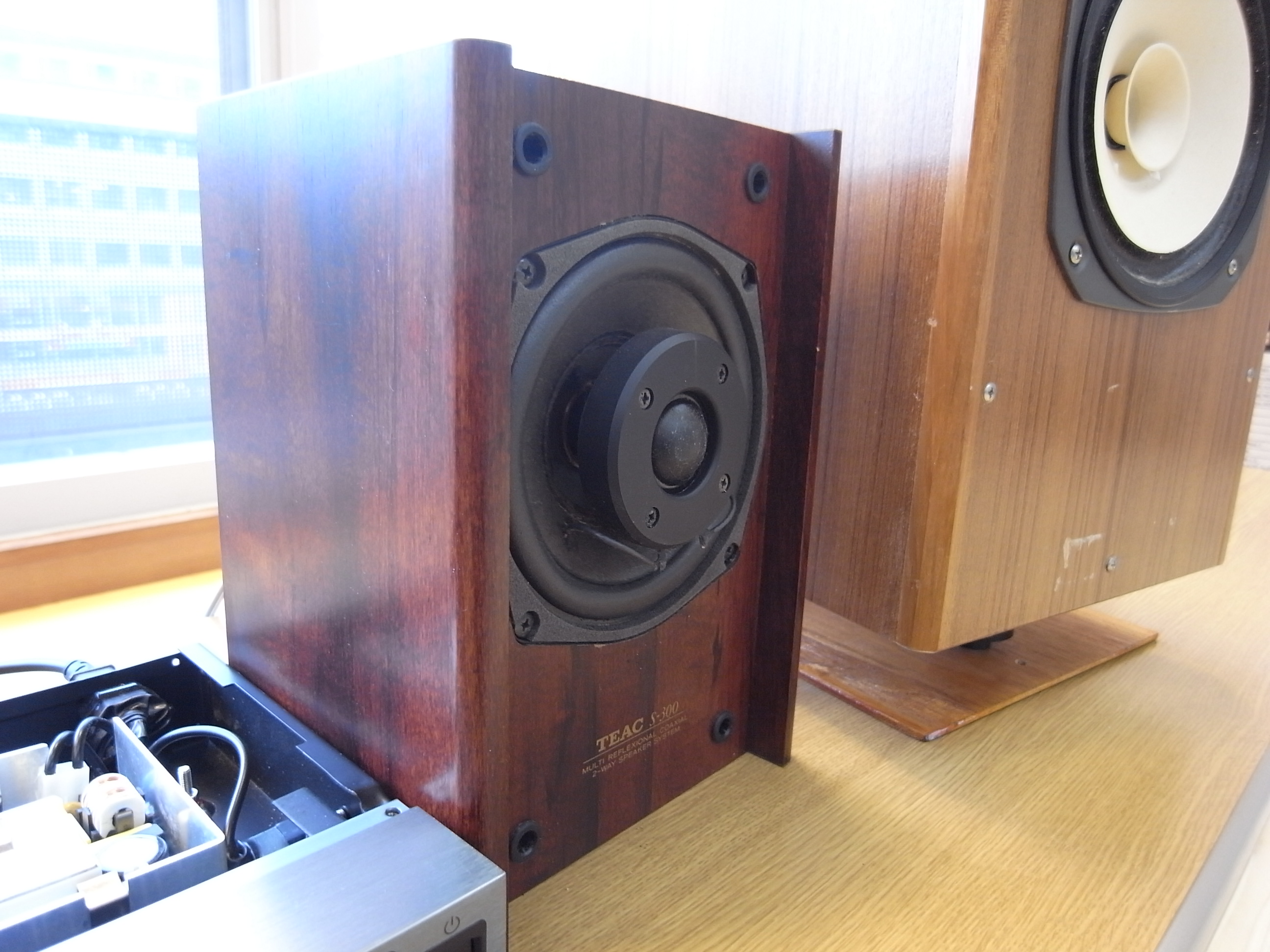 2way再生のために、家で長年眠っていたTEAC S-300を持ち込んで鳴らしていました。くっきりした少し派手目の音で、ジャズ系の再生に適するスピーカーということです。