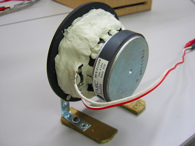 200Hzより上をこのスピーカで鳴らしました。電流アンプで駆動し、DCX2496で特性の暴れを補正しています。200Hzより下は手作りアンプの会のスピーカーです。